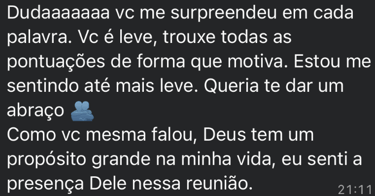 Você terá todo o apoio de pessoas REAIS em tempo REAL, tendo todo o direcionamento necessário para superar os obstáculos que estão te separando da vida que você merece alcançar.