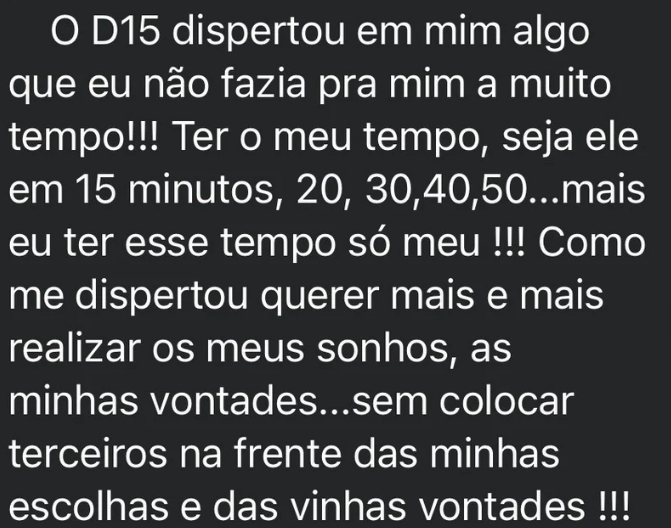 “O D15 despertou em mim vontades: realizar sonhos, sem escolha de terceiros”